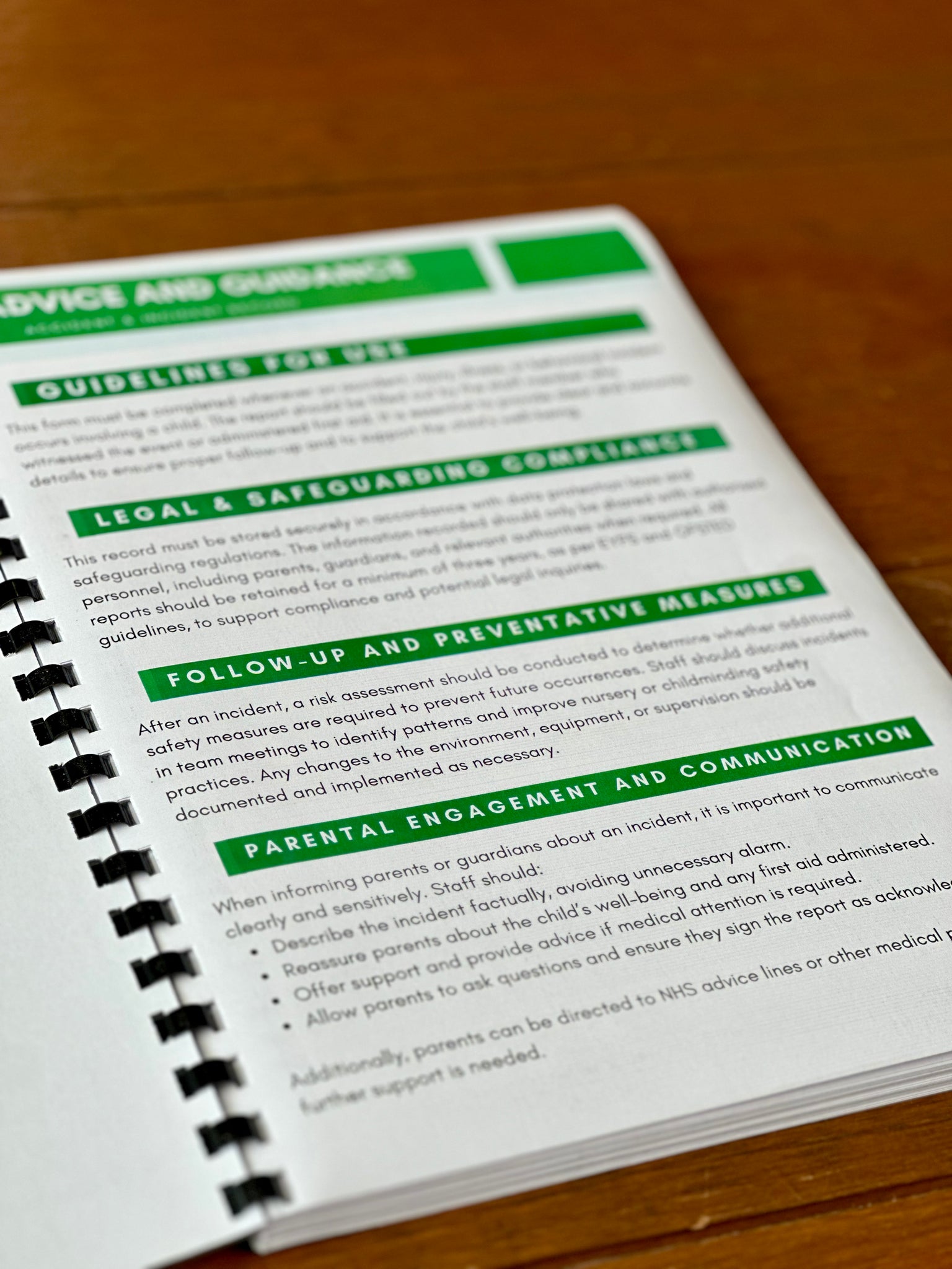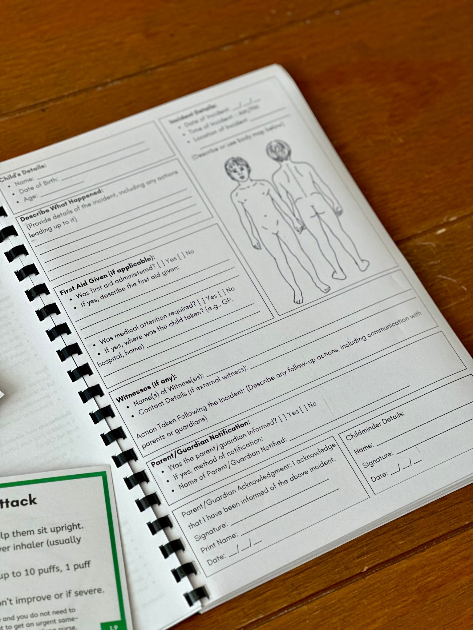 Our Accident & Incident Record Book is designed specifically for childminders and nursery settings, ensuring you meet legal requirements while also providing valuable guidance, including: