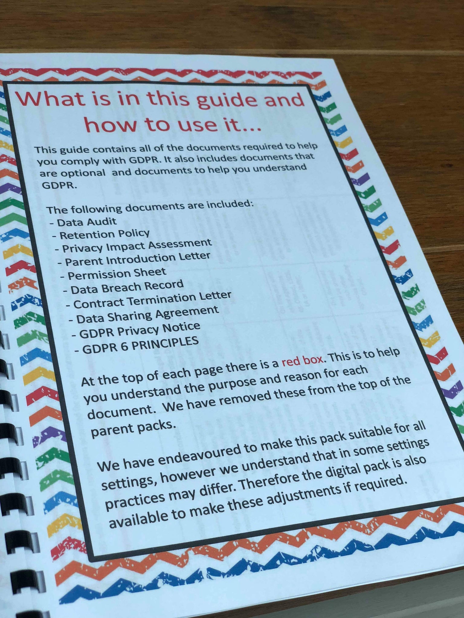 - GDPR for Childminders Guide - Bound and Protected - Complete guide with red box support for each and every page in your pack so you know exactly what each page is for and why it’s important.